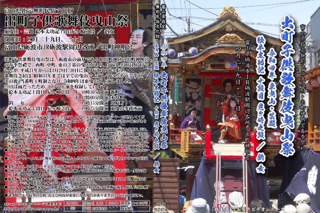 石川県鳳至郡能都町宇出津(2005年3月から合併により鳳珠郡能登町宇出津に地名変更)で平成14年4月20日、21日に行われた「宇出津曳山祭」の様子を収録したものです。