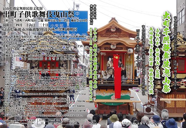 曳山運行時間 初 日 午後2時頃から午後8時頃 二日目 午前3時頃から午前7時頃 午後2時頃から午後8時頃 |