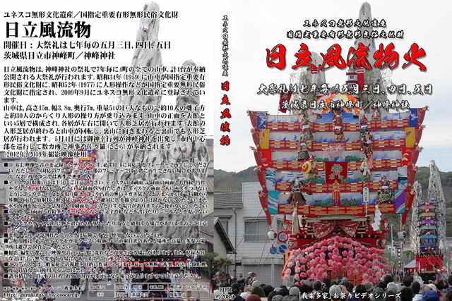 茨城県日立市神峰町で七年毎の5月3日、4日、5日に行われる「日立風流物」の様子を収録したものです。