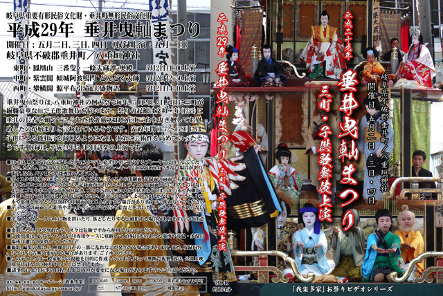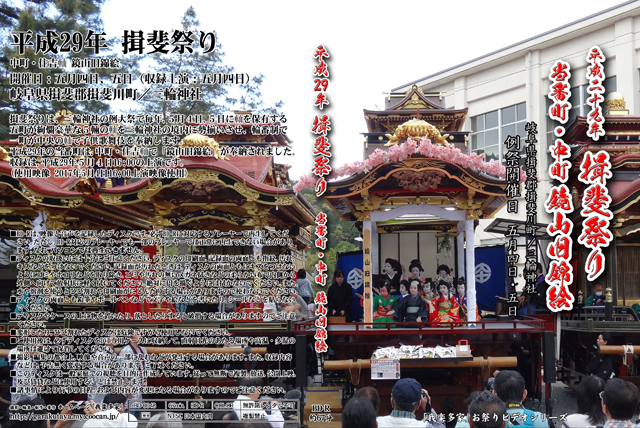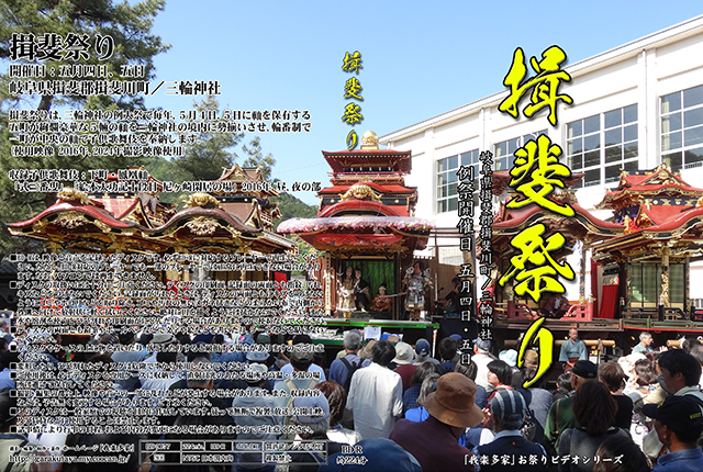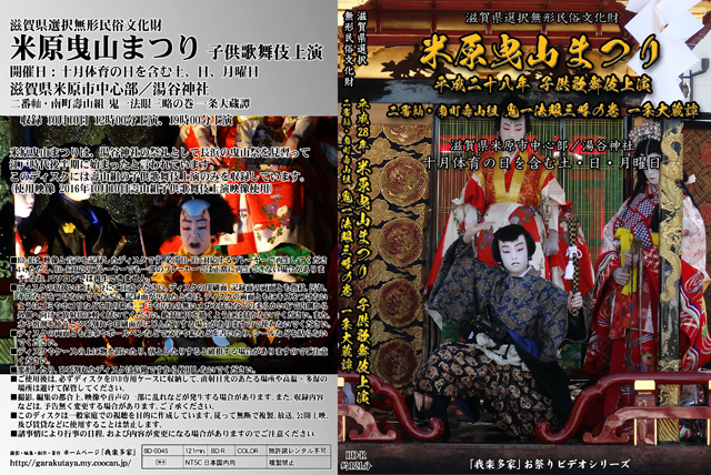 このBD-Rには、揖斐祭りの曳山運行や神輿渡御等の祭りの様子と平成28年の当番町である下町の「式三番叟」と「絵本太功記十段目 尼ヶ崎閑居の場」の昼の部と夜の部の上演を収録しています。