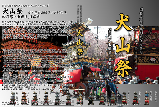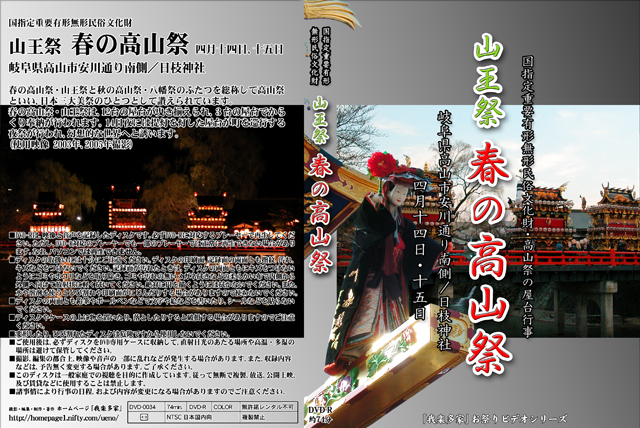 祭りに関する簡単な解説を字幕収録しています。 収録時間は、約74分です(2003年、2005年撮影映像使用)。 なお、収録映像は、4:3です(ワイドサイズではありません)。 |