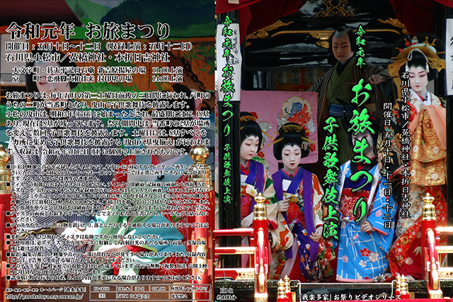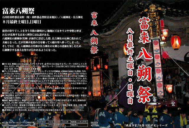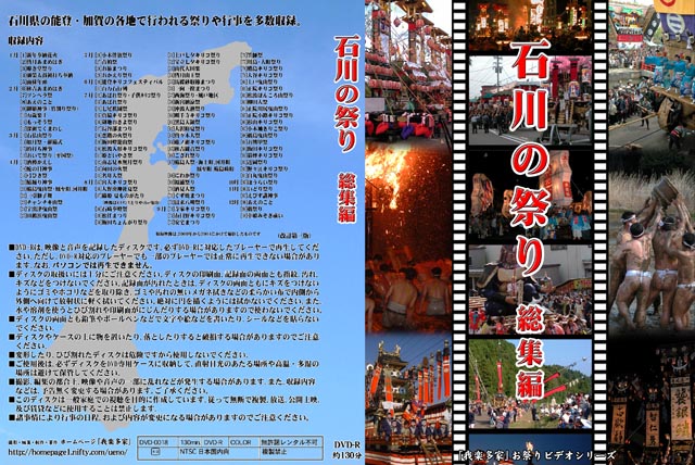 収録している祭りに関しては、「石川の祭り」のページで公開しているのを参考にしてください(映像内容は異なる場合がありますし、いくつか未公開のもあります)。