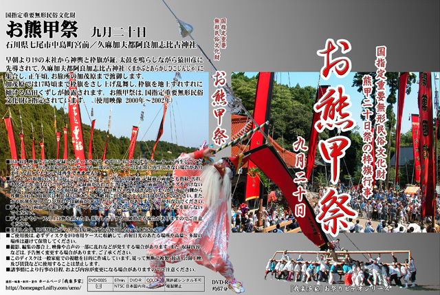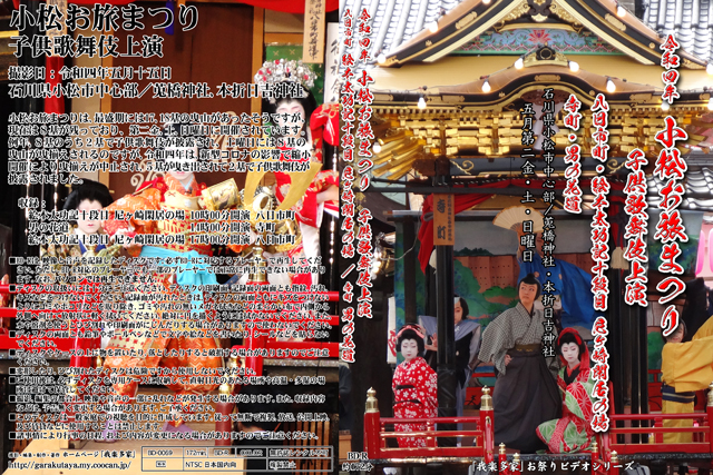 2000年から2004年にかけて撮影した石川県内の100種類以上の祭りやイベントの映像を年間の開催順に収録しており、全体で約130分です。