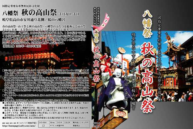 岐阜県高山市安川通り北側の市街地で毎年10月9日、10日に行われる「八幡祭 秋の高山祭」の様子を収録したものです。